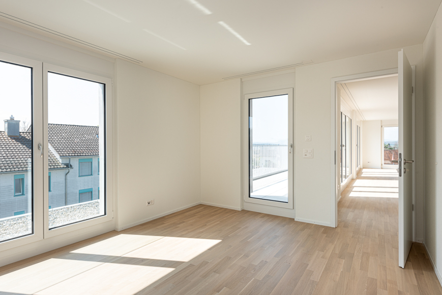 Projekt: Der Altbau aus den frühen 60er-Jahren wurde komplett modernisiert. Um zeitgemässe Mietwohnungen anbieten zu können, wurde die Fassade energetisch saniert und die haustechnischen Installationen sowie der Innenausbau mehrheitlich erneuert. Mit der Ausnützungsreserve der Liegenschaft wurde zum Einen der Anbau von Balkonen und zum Anderen ein Ersatz des Giebeldaches durch ein Attikageschoss realisiert. Der Attikaaufbau sowie die Balkone sind in Fertigmodulbauweise erstellt, um die Lastabtragung auf die bestehende Gebäudestruktur möglichst gering zu halten und die Bauzeit verkürzen zu können. Das Mehrfamilienhaus umfasst heute sieben attraktive 3 1/2-Zimmer-Wohnungen an zentraler Lage in Bülach.