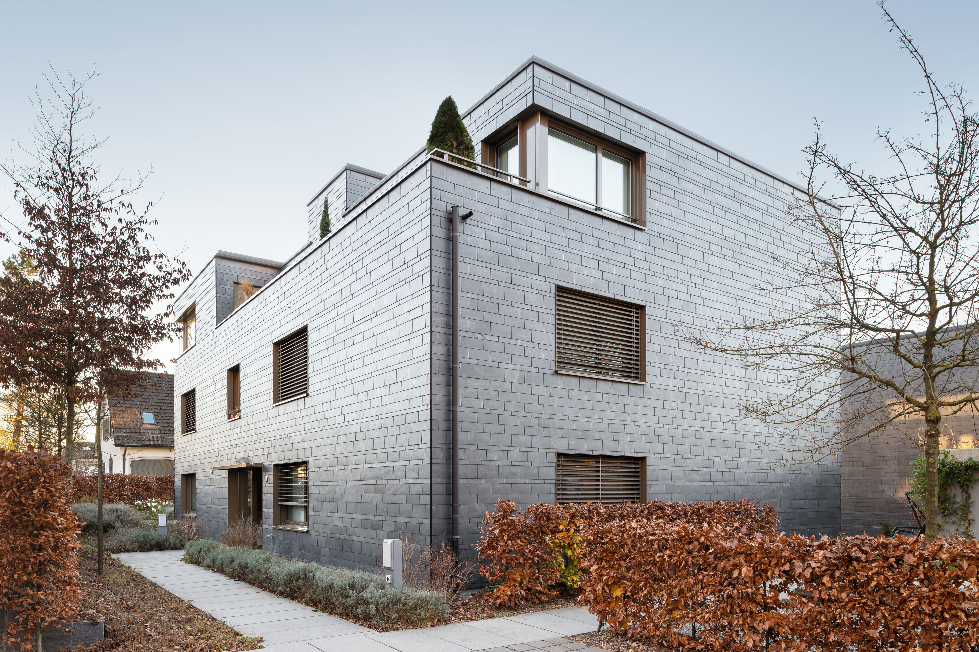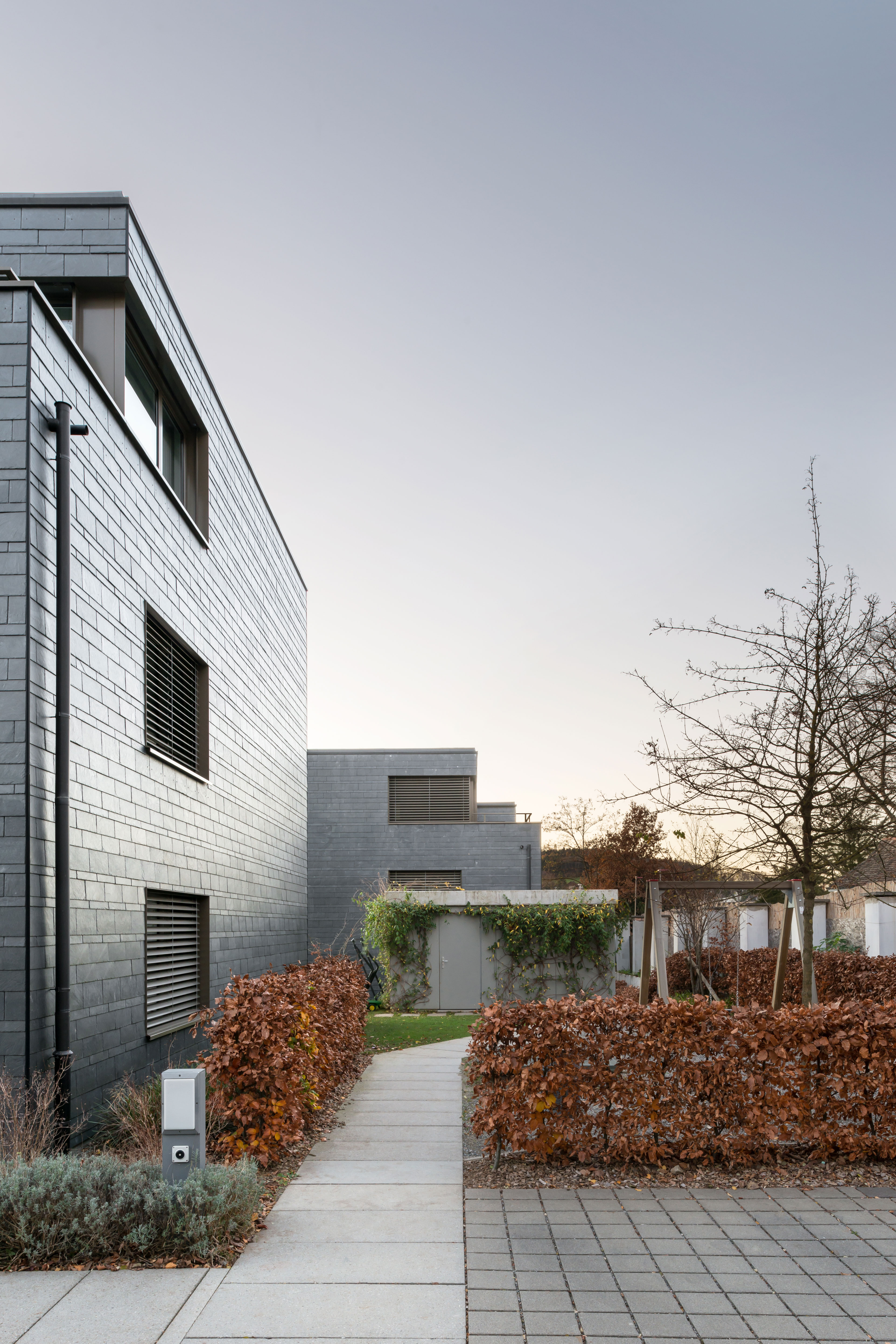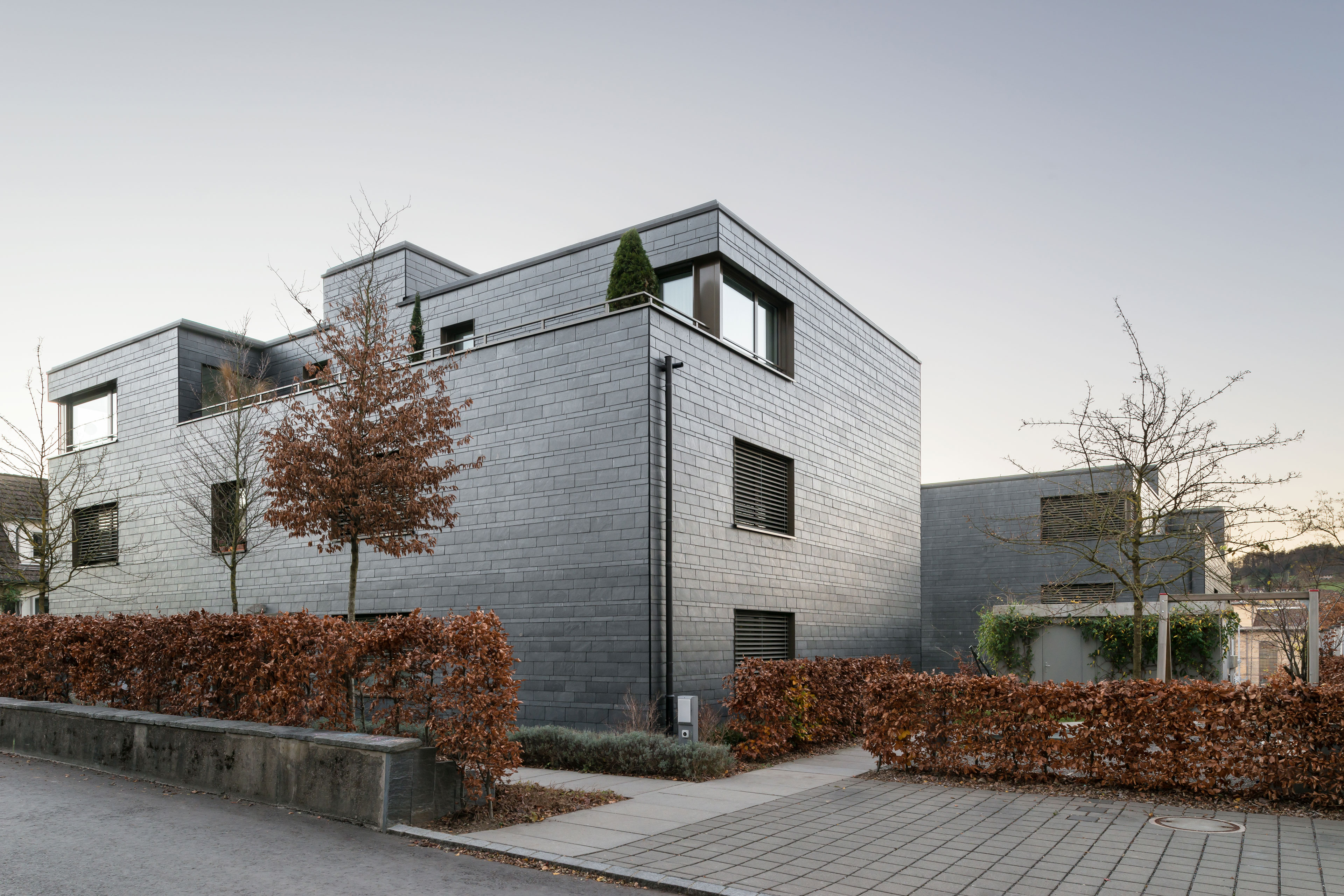 Projekt: Neubau von zwei Mehrfamilienhäuser mit je 3 Eigentumswohnungen, zentrale Unterniveaugarage, Wärmeerzeugung mit Erdsonden, Minergie zertifiziert